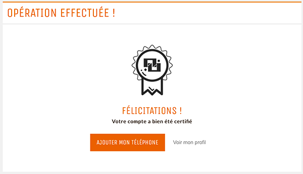 Si vous avez bien complété toutes les étapes, vous verrez la confirmation de certification du compte.